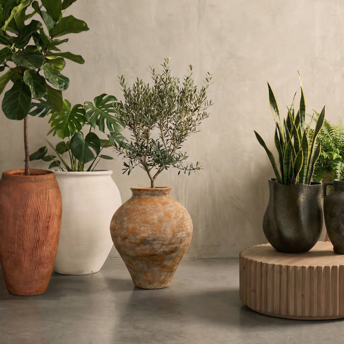 Sahara Fiber Clay Planter, Hand-painted in Earthly Gray, 19.6"D x 13"H