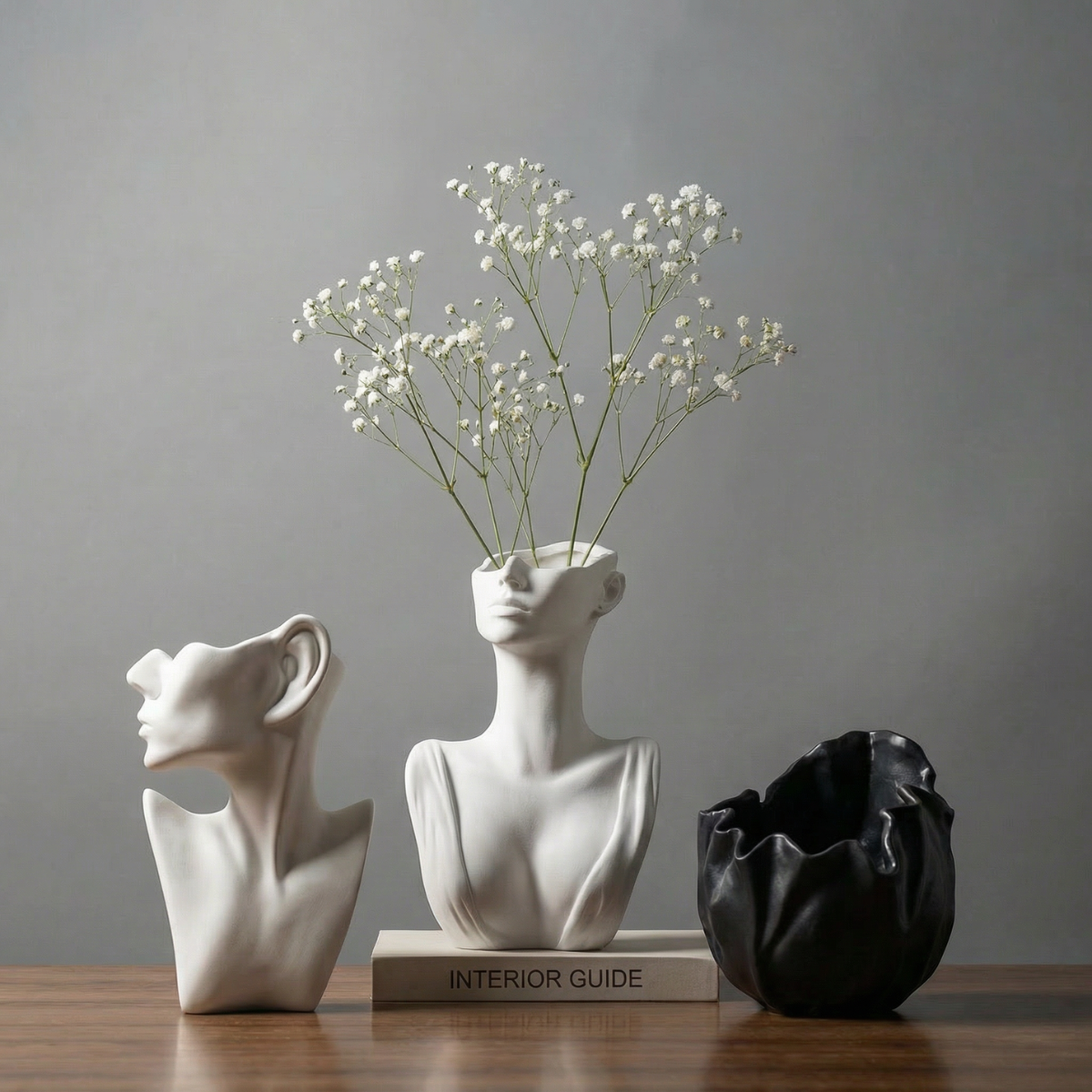 Marilla, Modern Lady Head Ceramic Vase, 4.4" L x 7.2" H