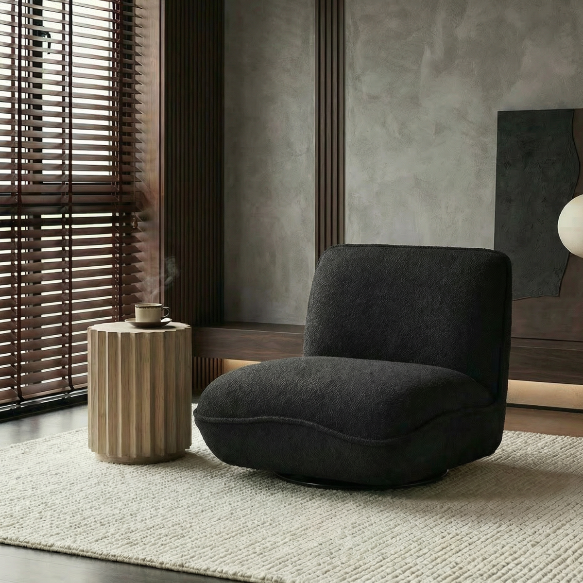 Avalon, Swivel Sofa Lounge Chair in Soft Black, 34”L x 38”W x 30”H