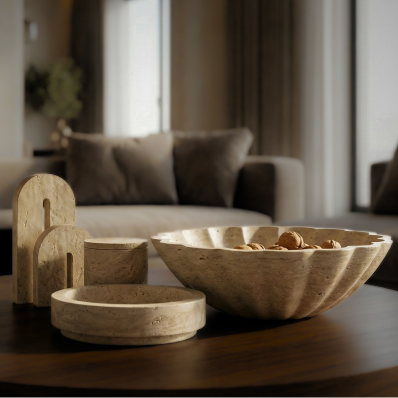 Crescendo Large Beige Travertine Bowl with Scalloped-edge Detail