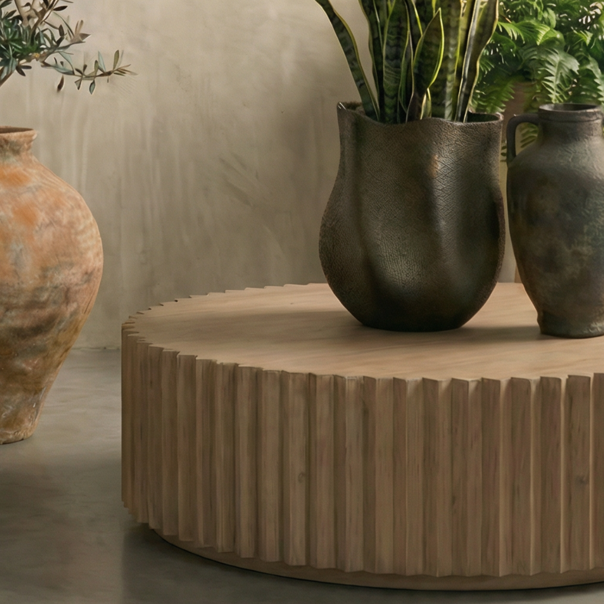 Sahara Fiber Clay Planter, Hand-painted in Earthly Gray, 19.6"D x 13"H