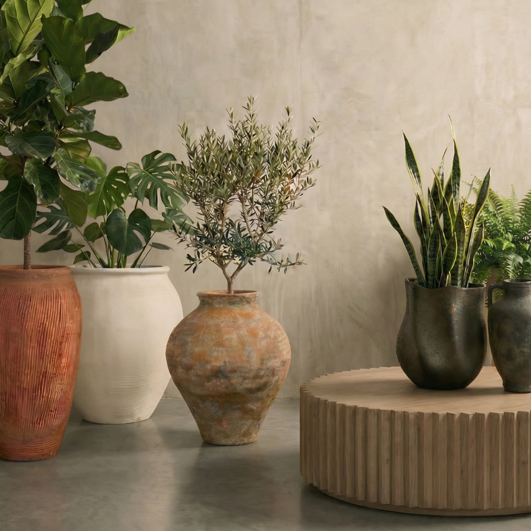 Tahiti Fiber Clay Planter, Hand-painted in Weathered Black